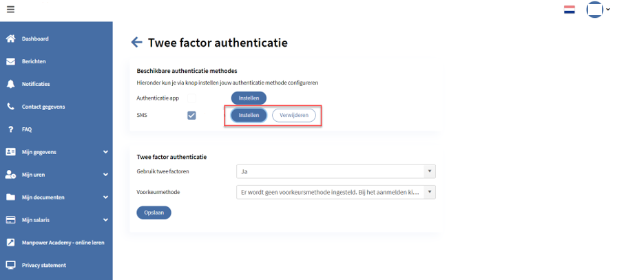 (2FA5) Stel vervolgens het mobiele nummer opnieuw in.