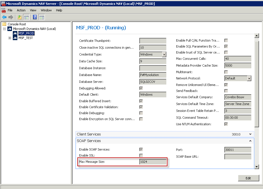 - In het tabblad 'SOAP Services' staat Max. Message Size'. Standaard staat de limiet op 1 MB (1024 KB) is ingesteld. Indien het wenselijk is om deze te vergroten dan kan dat op deze plek. De bestandsgrootte wordt opgegeven in Kilobyte. Voor het omrekenen van MB naar Kb kunt u dit tooltje gebruiken